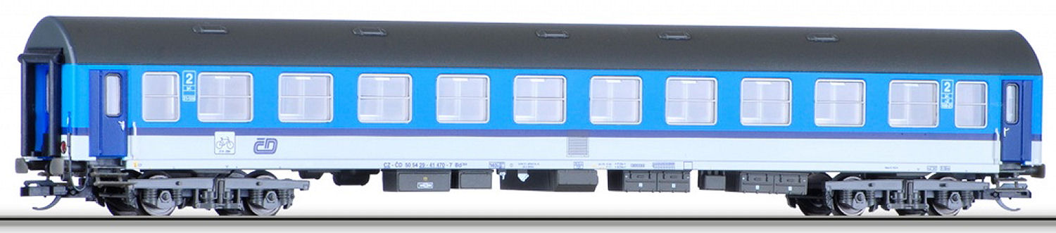Reisezugwagen B 264 2. Klasse (Typ Y/B 70) Betriebsnummer CZ-ČD 50 54 29-41 470-7 der Tschechische Bahnen (ČD) mit Fahrradabteil. Länge über Puffer 204 mm. |