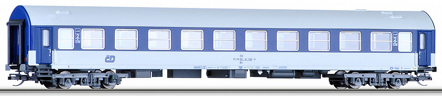 en   Couchette coach Bc.   Couchette coach Bc 2nd class (type Y) operating number 51 54 59-41 156-4 of the State Railroad of Czech (ČD). Length from buffer to buffer 204 mm.