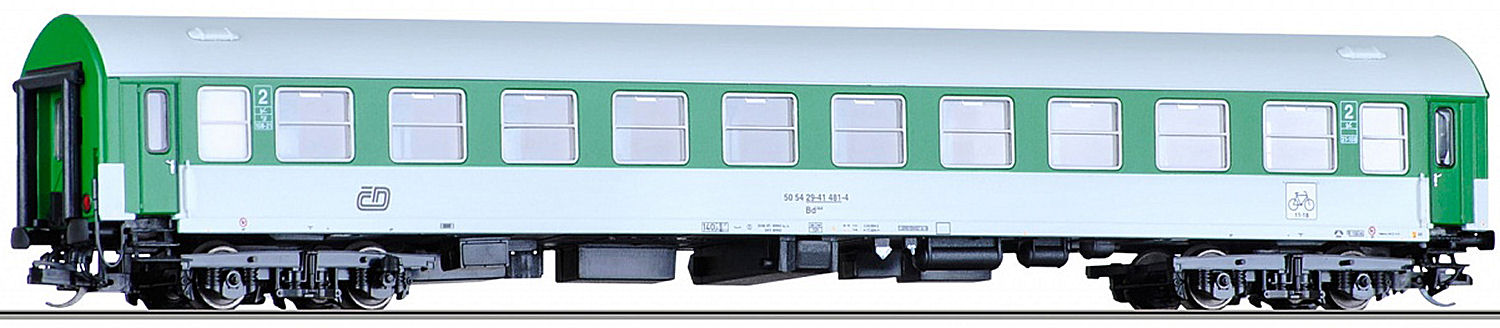 cz   Rychlíkový vůz Bd 264.   Rychlíkový vůz Bd 264 2. tř. (typu Y/B 70) číslo 50 54 29-41 481-4 železnice České Dráhy (ČD) s oddílem na kola. Délka modelu 204 mm.