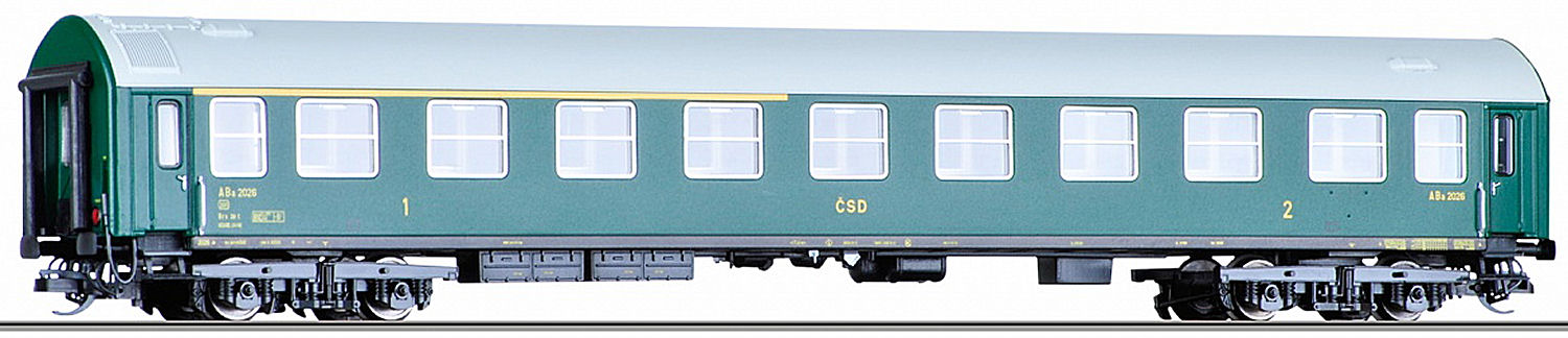 Rychlíkový vůz ABa 1./2. tř. (typu "Y") číslo 2026 železnice Československé státní dráhy (ČSD). Délka modelu 204 mm. |