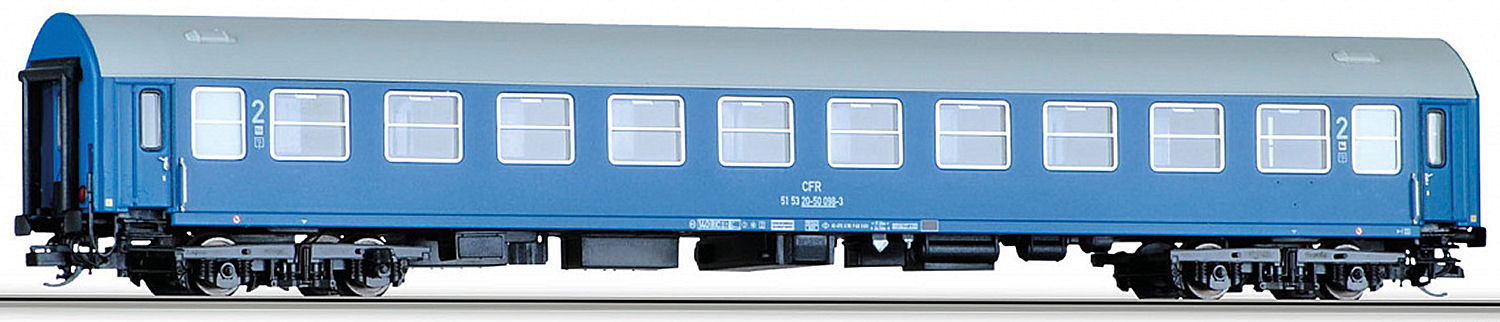 Wagon osobowy B 2 kl. (typ Y/B 70) o numerze 51 53 20-50 098-3 kolei Rumińskie Koleje Państwowe (CFR). Długość 204 mm. |