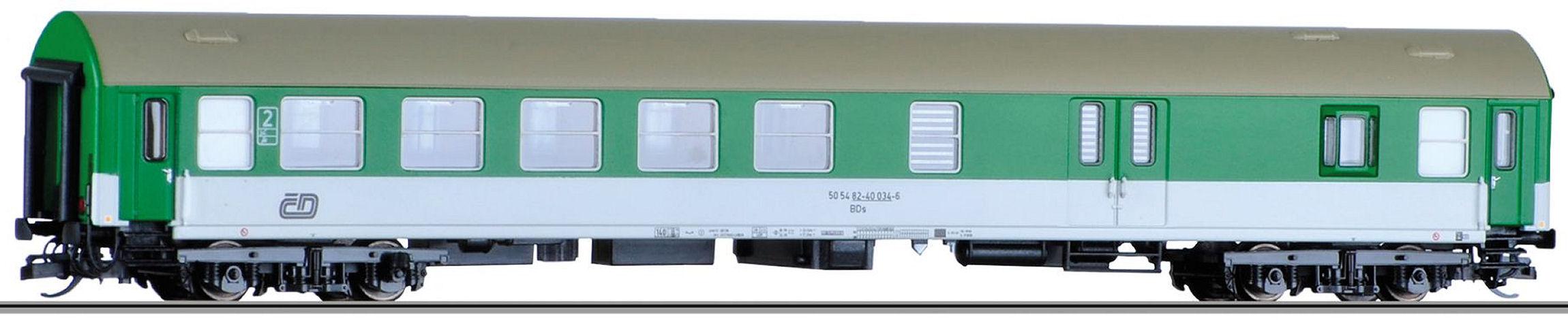 Reisezugwagen BDs (Typ Y) 2. Klasse mit Gepäckabteil Betriebsnummer 50 54 82-40 034-6 der Tschechische Bahnen (ČD). Länge über Puffer 204 mm. |