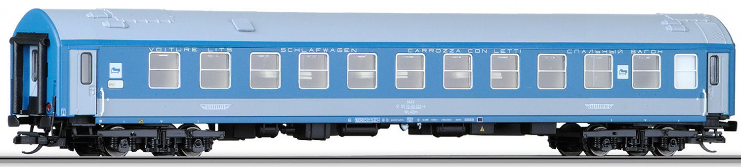 en   Sleeping car WLABm.   Sleeping car WLABm (type Y) operating number 51 55 70-80 002-6 of the Hungarian Railways (MÁV). Length from buffer to buffer 204 mm.