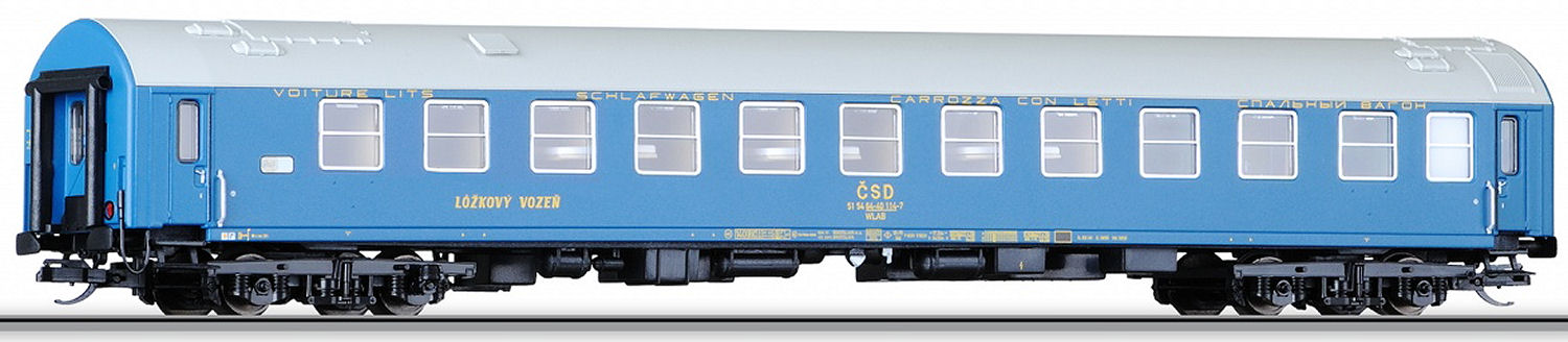 Lůžkový vůz WLAB (typu Y) číslo 51 54 64-40 114-7 železnice Československé státní dráhy (ČSD). Délka modelu 204 mm. |