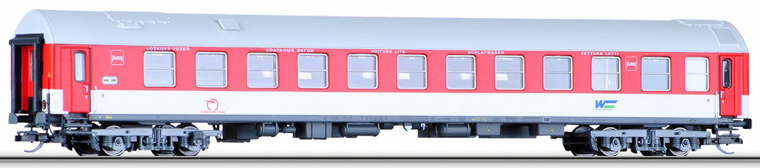 Sleeping car WLAB (type Y) operating number SK-ZSSK 51 56 70-40 061-0 of the Railway Company Slovakia (ŽSSK). Length from buffer to buffer 204 mm. |