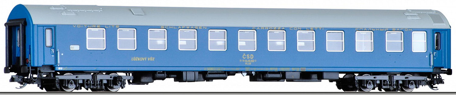 en   Sleeping car WLAB.   Sleeping car WLAB (type Y) operating number 51 54 64-80 003-3 of the Czechoslovak State Railways (ČSD). Length from buffer to buffer 204 mm.
