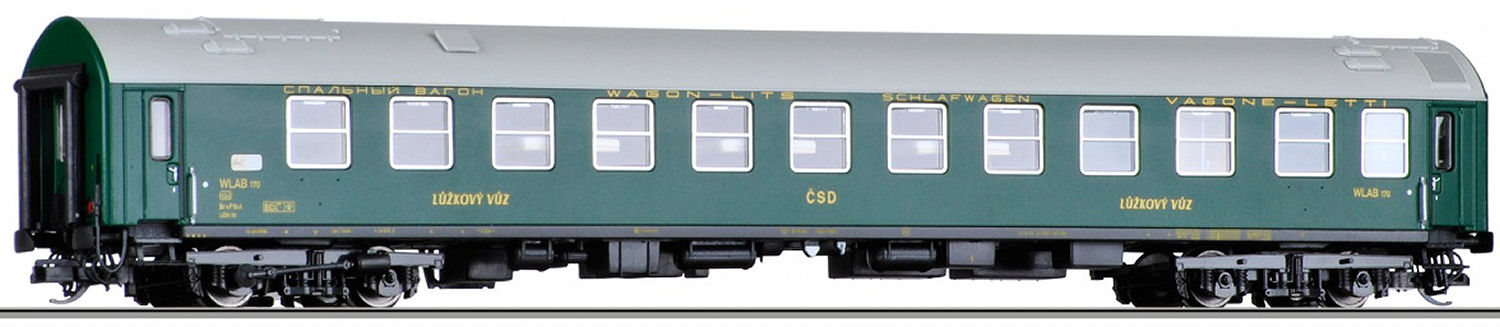 Lůžkový vůz WLAB (typu Y) číslo 170 železnice Československé státní dráhy (ČSD). Délka modelu 204 mm. |