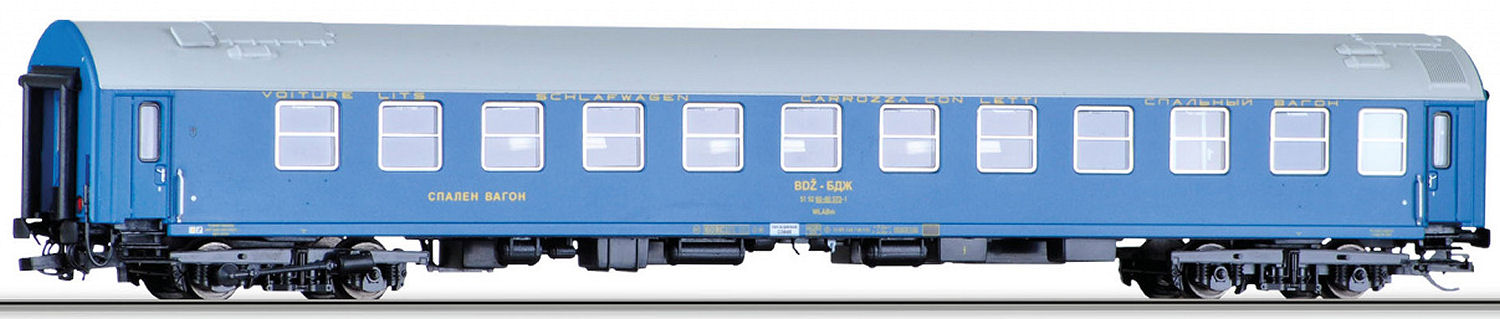 Sleeping car WLABm (type Y) operating number 51 52 60-80 573-1 of the Bulgarian Railways (BDŽ/БДЖ). Length from buffer to buffer 204 mm. |