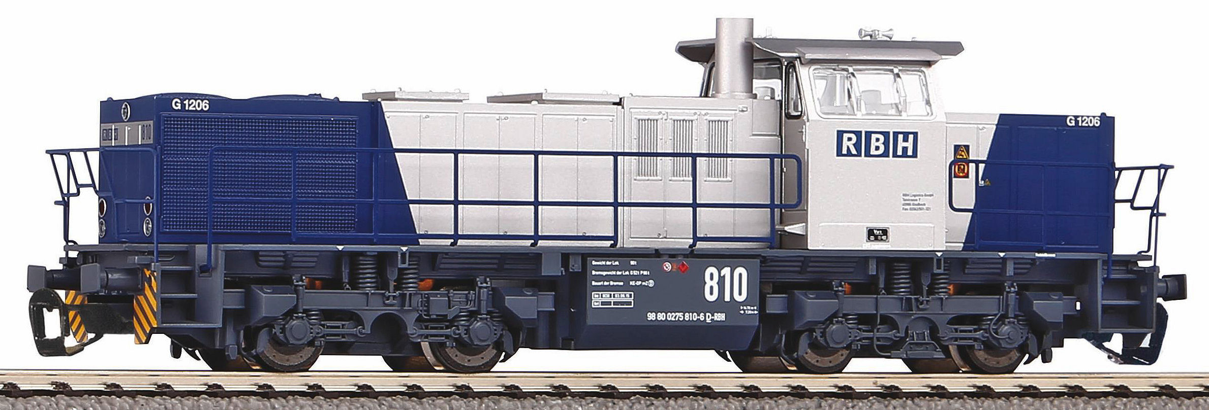 Diesel locomotive class MaK-G 1206 with the numer 98 80 0275 810-6 D-RBH of the RBH Logistics GmbH. Length from buffer to buffer 123 mm. |
