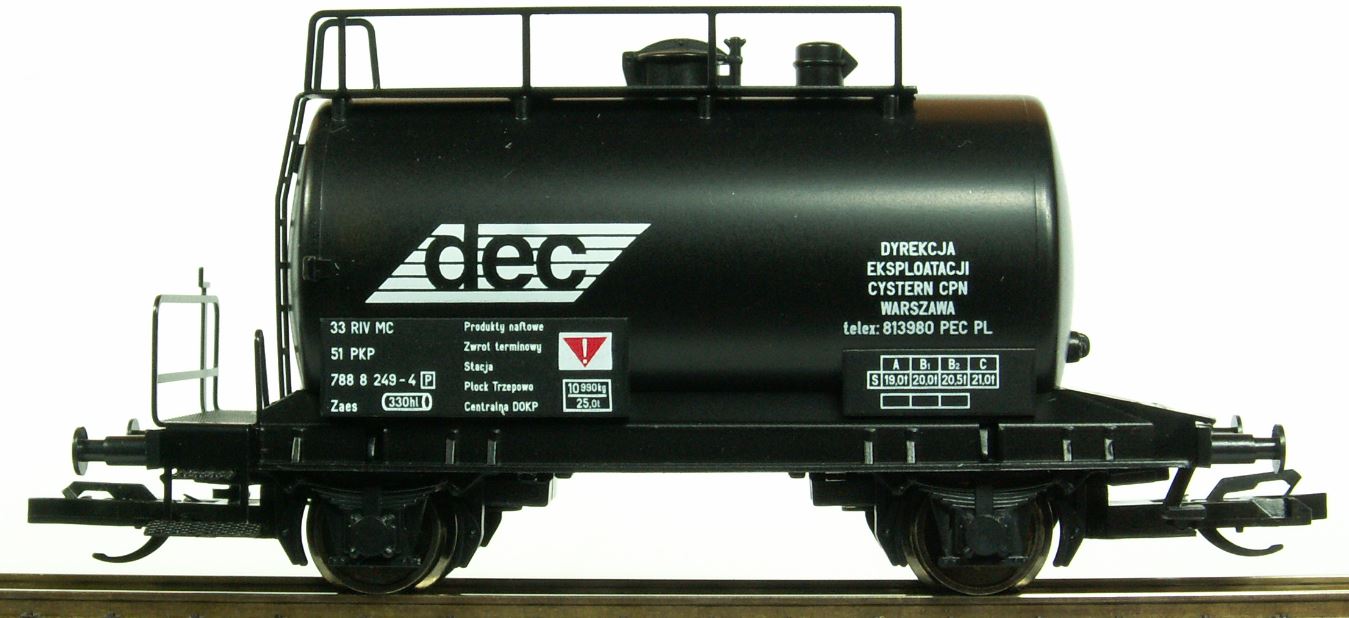 2-axles tank waggon Zaes operating number 33 51 788 8 249-4 of the PKP „DEC”. Length from buffer to buffer 76 mm. |