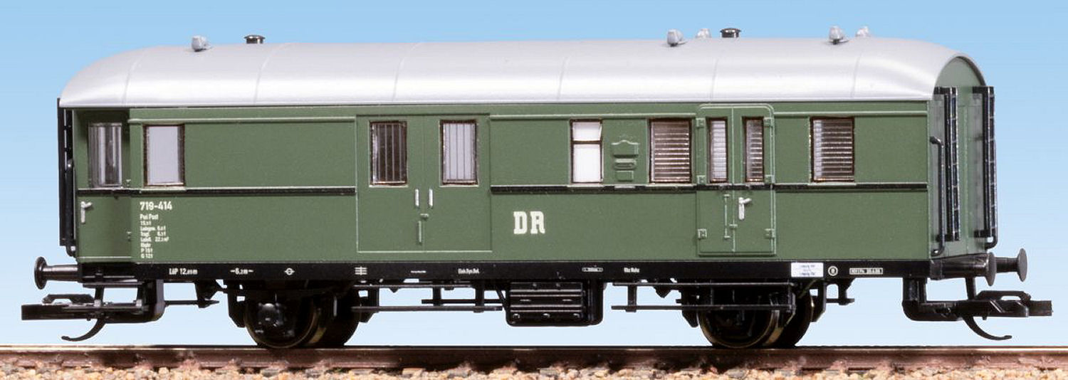 en   Mail wagon PwPosti34a.   Mail wagon PwPosti34a operating number 719-414 of the Deutsche Reichsbahn. Length from buffer to buffer 108 mm.