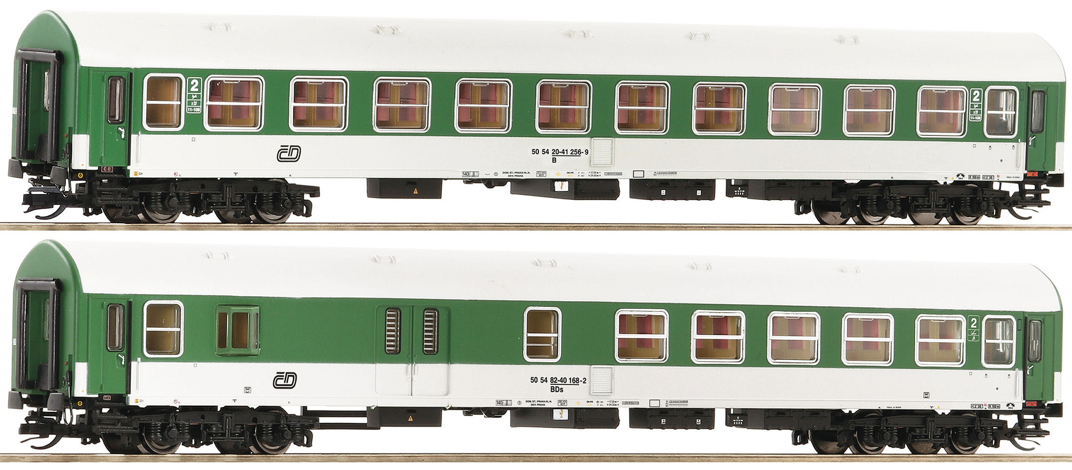 en   Passenger coach set Set2.   Passenger coach set with two passenger coaches type Y/B 70 of the State Railroad of Czech (ČD). Length from buffer to buffer 408 mm.