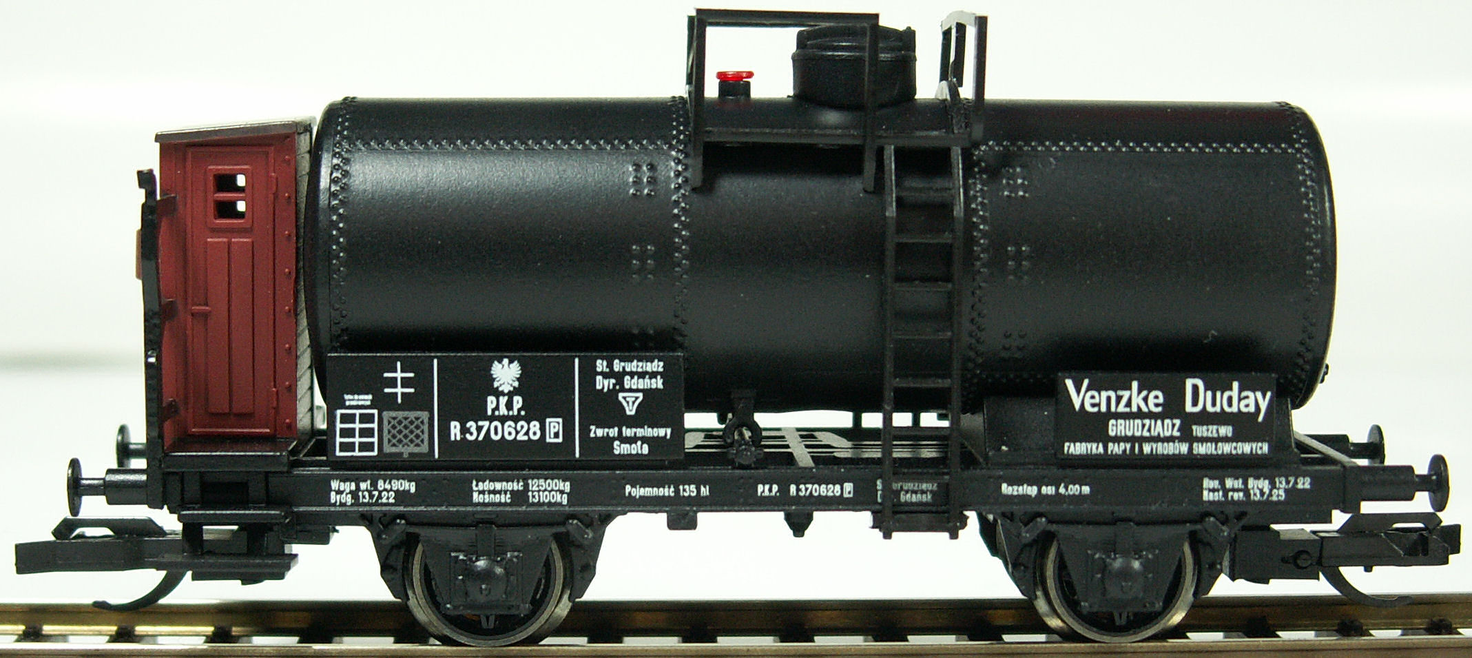 2-axles tank waggon R operating number R 370628 [P] of the PKP „Venzke Duday”. Length from buffer to buffer 74 mm. |
