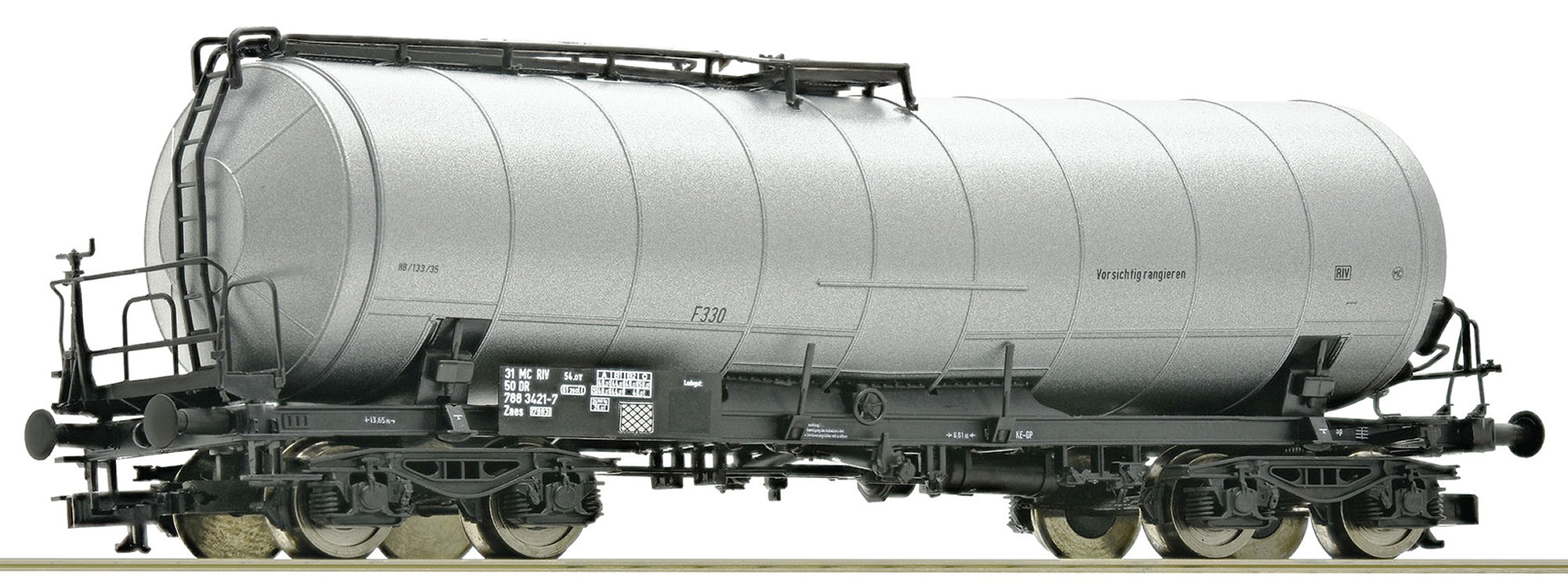 en   4-axles tank waggon Zaes.   4-axles tank waggon Zaes operating number 31 50 788 3421-7 of the National Railroad of East Germany (DR). Length from buffer to buffer 114 mm.