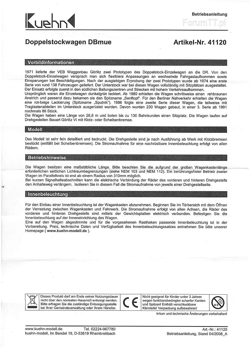 Čtyřnápravový patrový vůz DBmue 2.tř. číslo 50 50 25-13 020-2 železnice Deutsche Reichsbahn. Délka modelu 223 mm. |