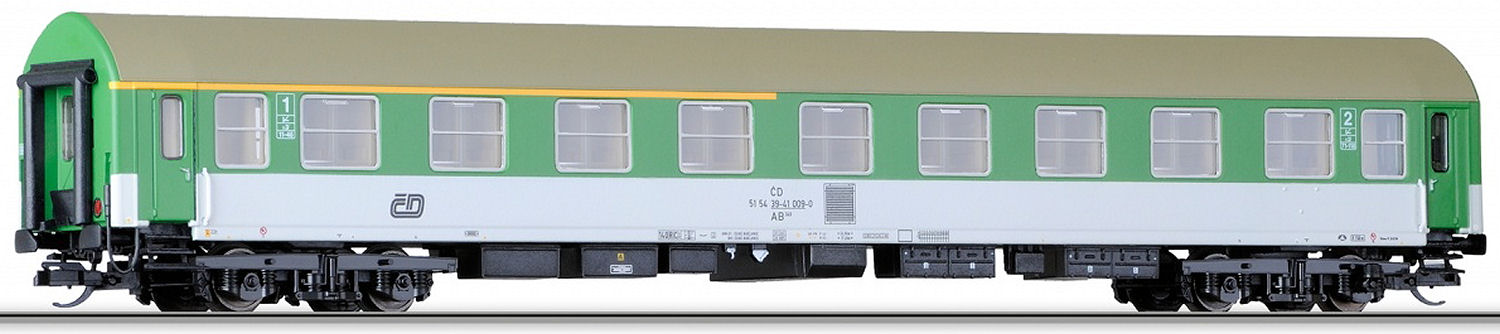 Rychlíkový vůz AB 349 1./2. tř. typu Y/B 70 číslo 51 54 39-41 009-0 železnice České Dráhy (ČD). Délka modelu 204 mm. |