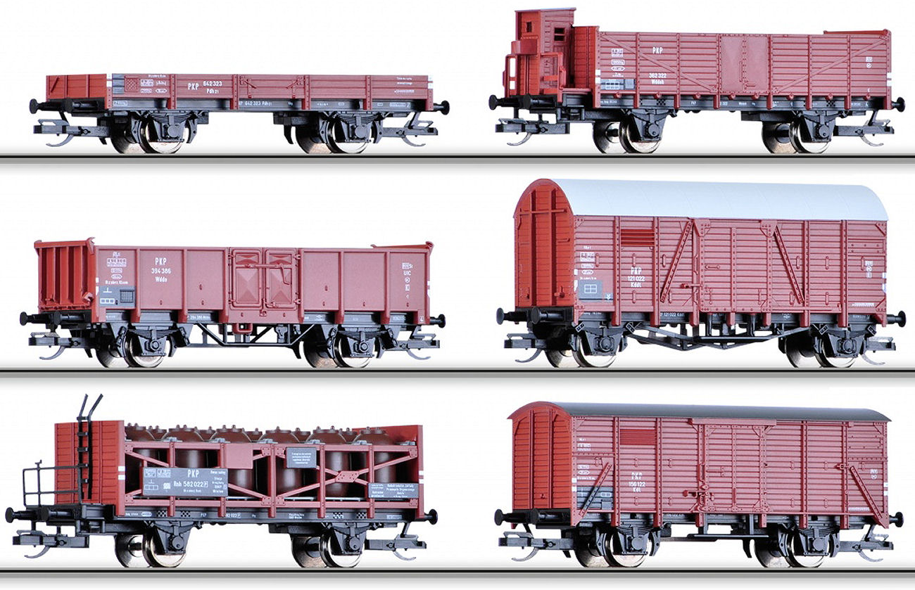 6- teiliges Güterwagenset der PKP. Länge über Puffer 480 mm. |