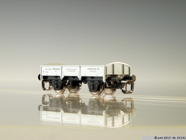 Low-sided wagon X operating number 13 of the Leuna-Werke AG. Length from buffer to buffer 55 mm. |