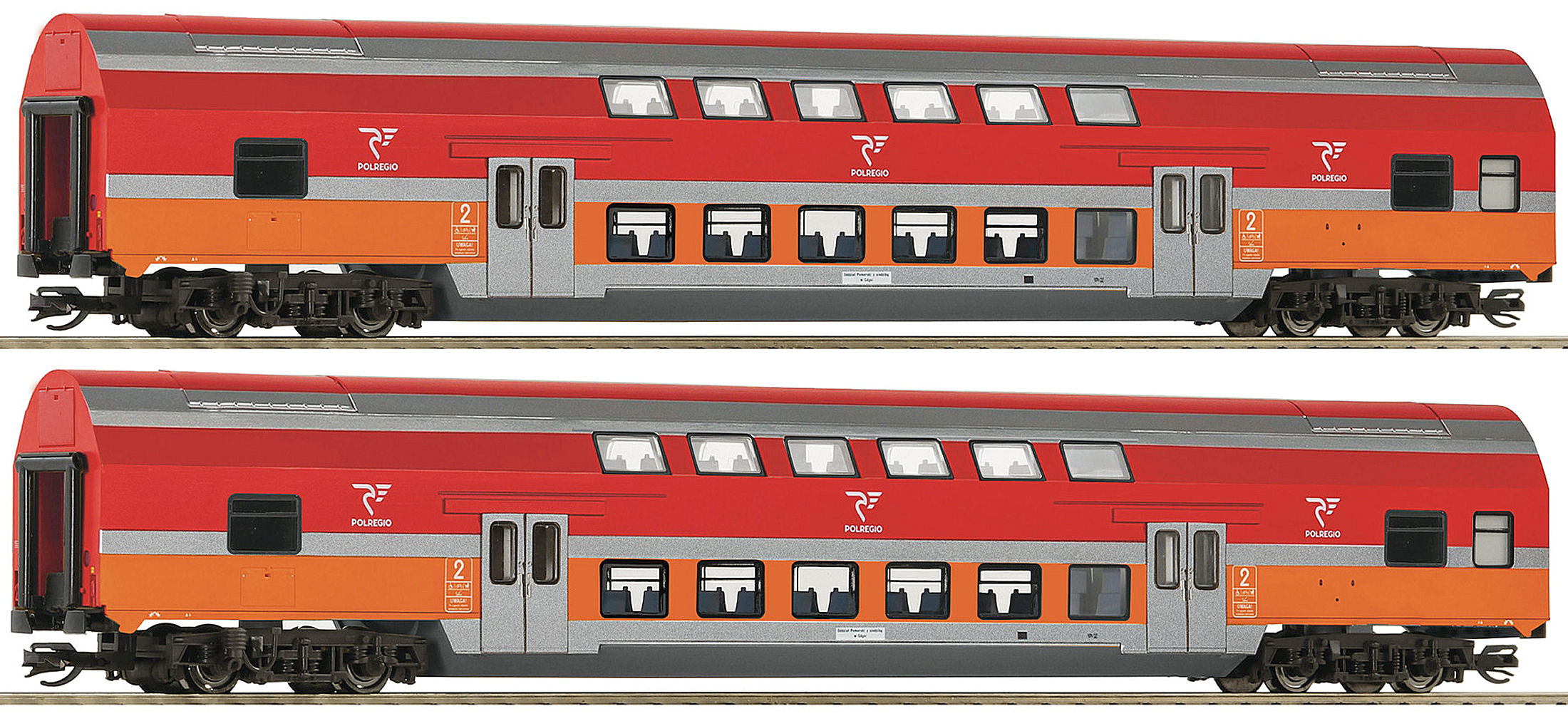 en   Double-deck 2 coach set.   Double-deck 2 coach set B16mnopux of the Polregio (PKP). Length from buffer to buffer 446 mm.