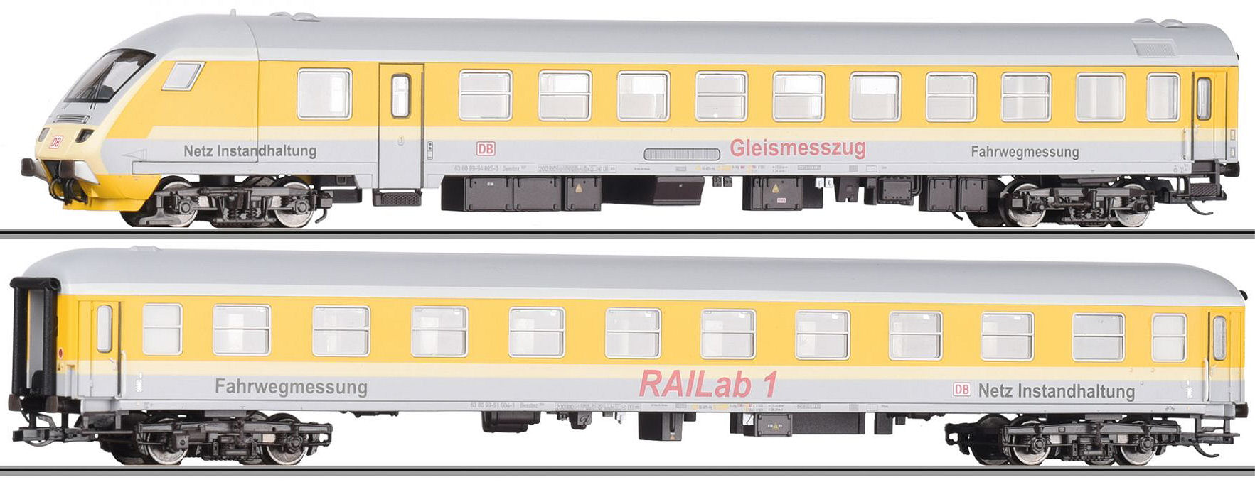 Souprava servisních vozidel „Traťový měřicí vlak” železnice DB Netz skládající se z řídícího vozu a měřicího vozu. Délka modelu 664 mm. |