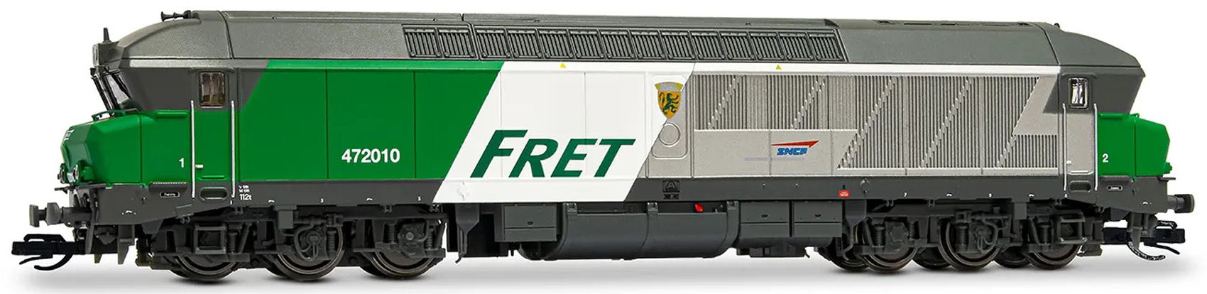 6-ach. Diesellokomotive CC 72010, der Nationalgesellschaft der Französischen Eisenbahnen (SNCF) „FRET”. Länge über Puffer 168 mm. |