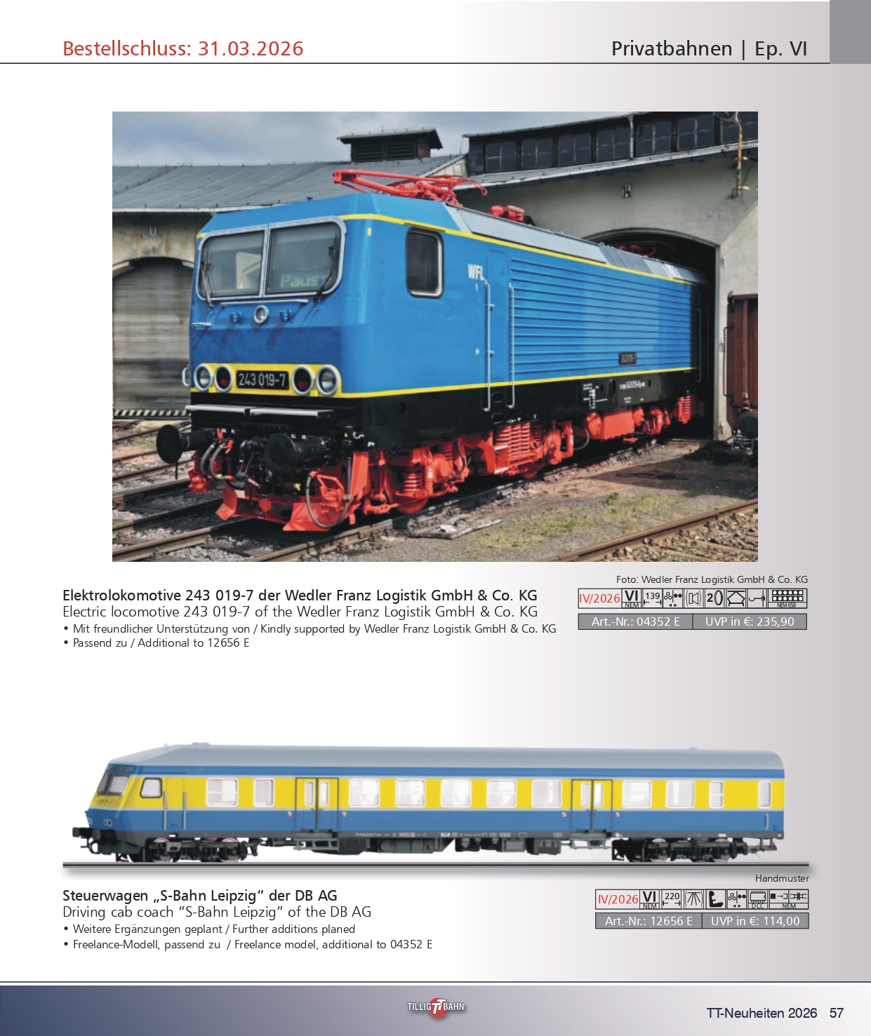 Alle Rechte vorbehalten. Das Copyright liegt der Firma TILLIG GmbH & Co.KG bei. Jede Art der Weiternutzung, auch auszugsweise, bedarf vorherigen schrIftlichen Genehmigung. |