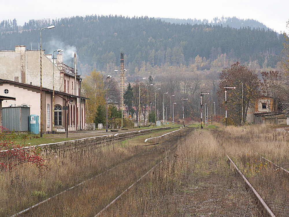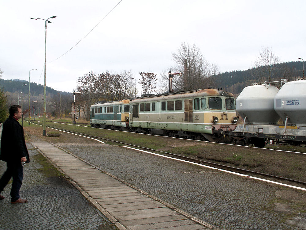 (nie odchodzi stąd obecnie żaden pociąg pasażerski) trafiliśmy skład do Czech ciągnięty przez dwa Rumuny. W składzie było kilka ciekawych