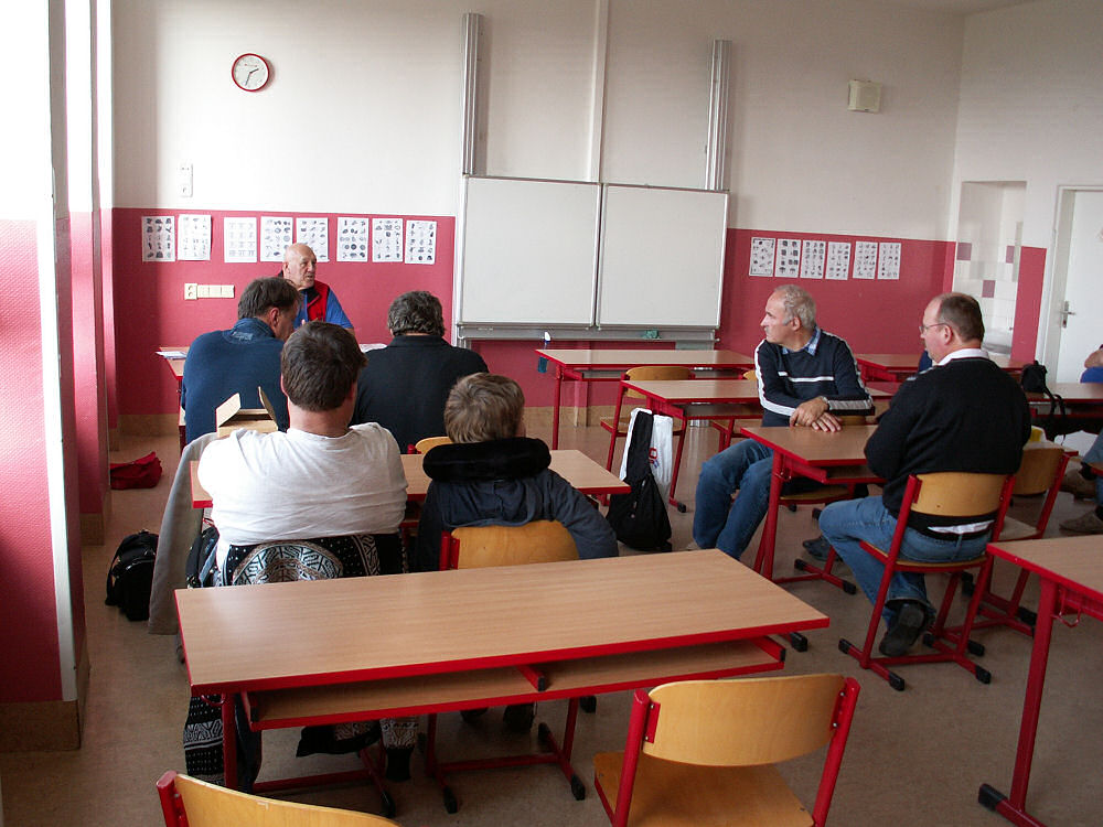 w czwartek (23-go) na rynku w Mieroszowie skąd konwojem 4 samochodów dotarliśmy do Trutnova. Spotkanie miało miejsce w szkole lecz awaria