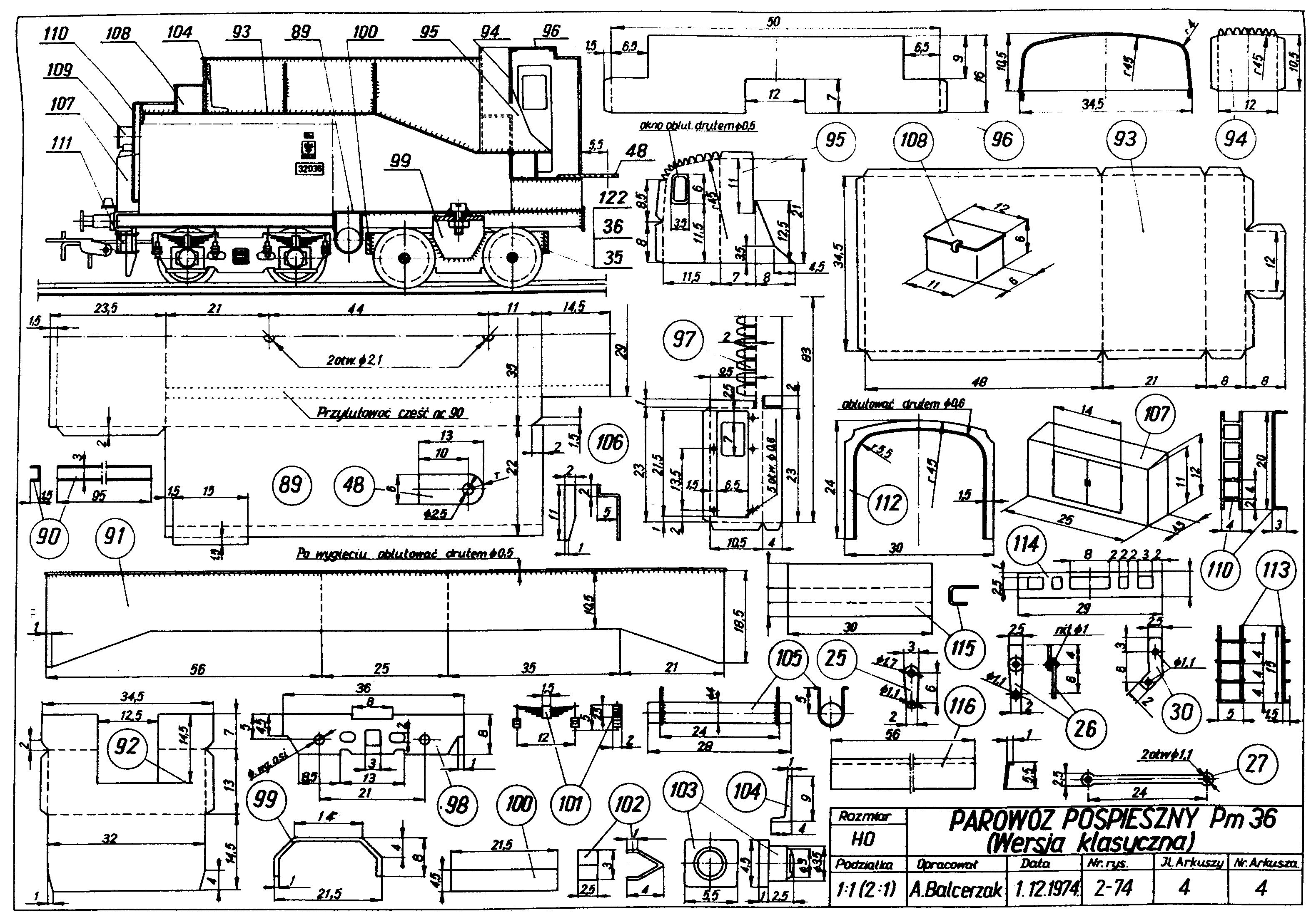 gdyż model jest dość trudny. Dokumentację modelarską parowozu serii Pm-36 (wersji aerodynamicznej)