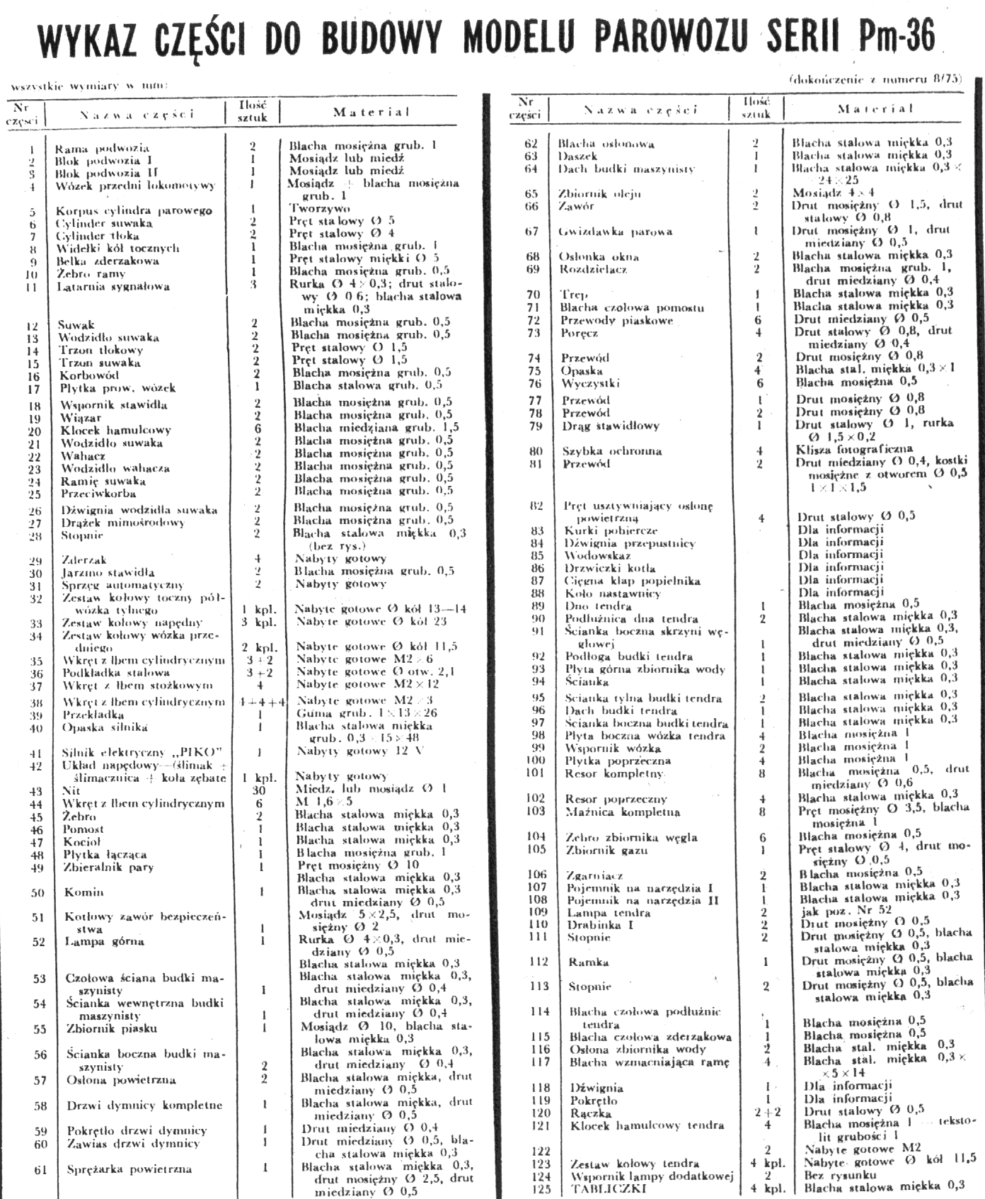 parowozu pospiesznego serii Pm-36, we wersji klasycznej, wykonujemy znanymi z poprzednich opisów sposobami. Podstawowe materiały